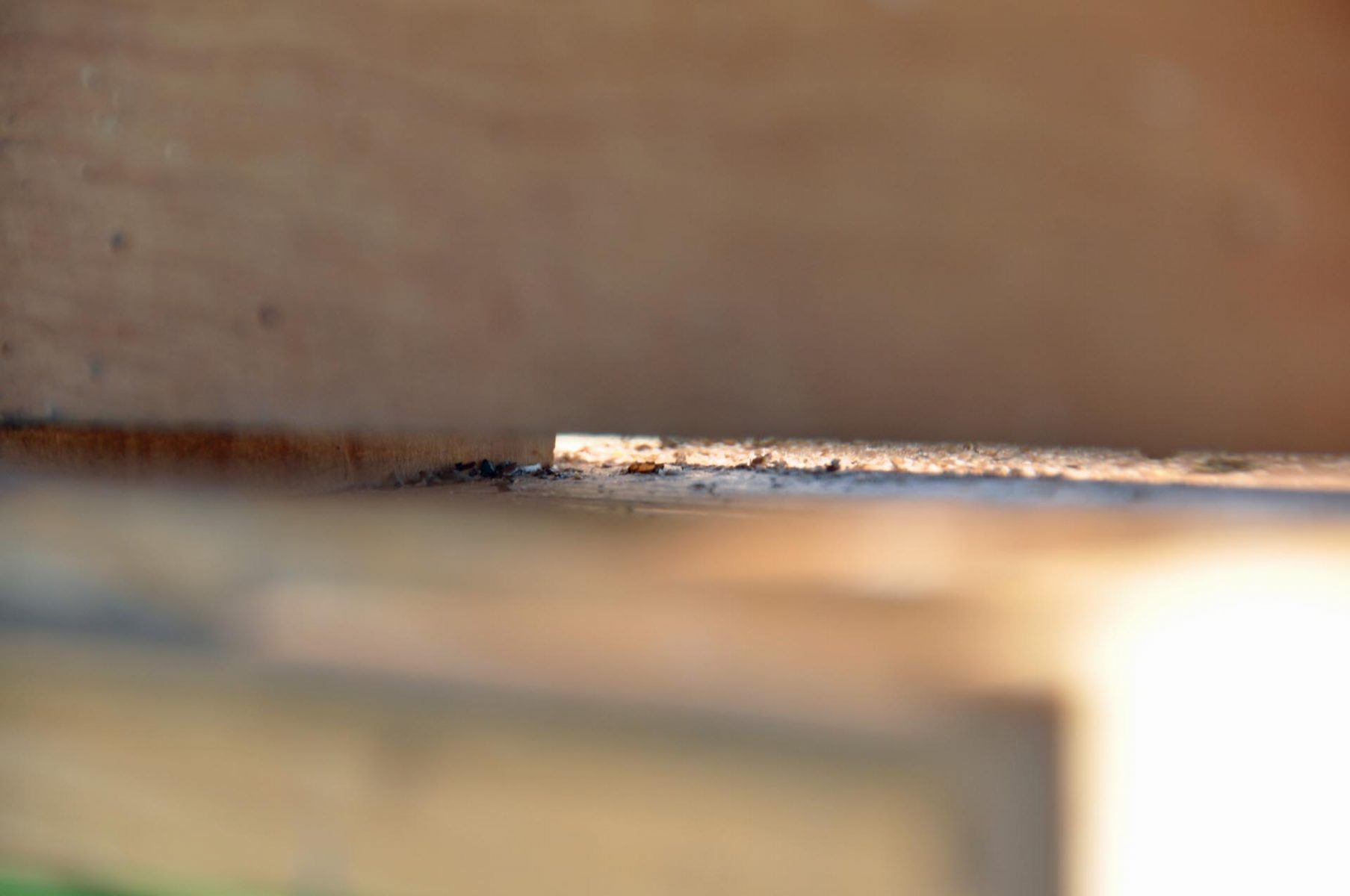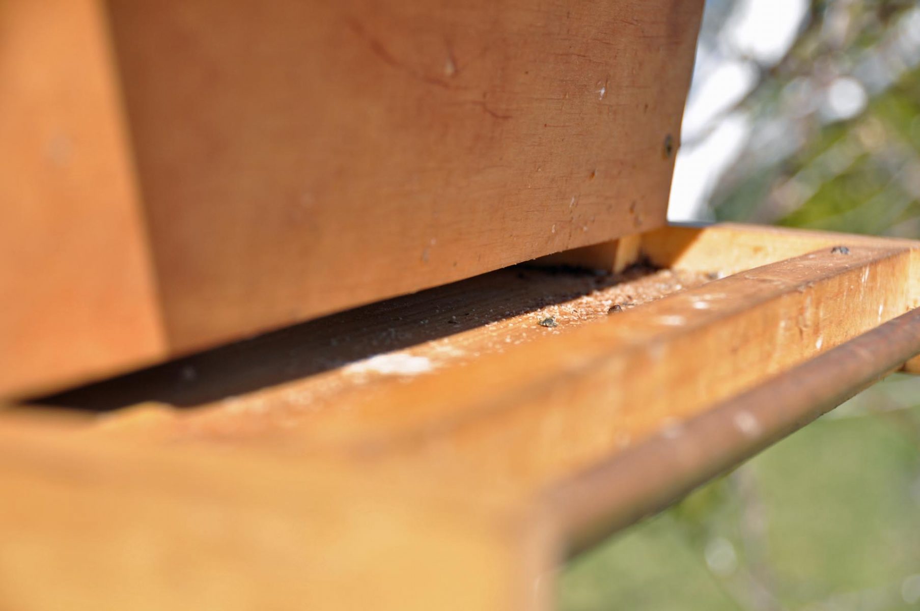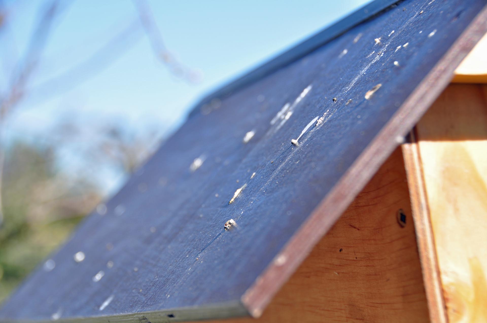Od kilkunastu dni przyglądam się, co się dziej wokół budki. Owszem, widać było coś na kształt zainteresowania budką ze strony bogatek, ale żeby któraś wpadała do środka, to nie widziałem. Tymczasem dzisiejsze otwarcie budki to było zupełne zaskoczenie. Popatrzcie, ile mchu one już tam nazbierały: